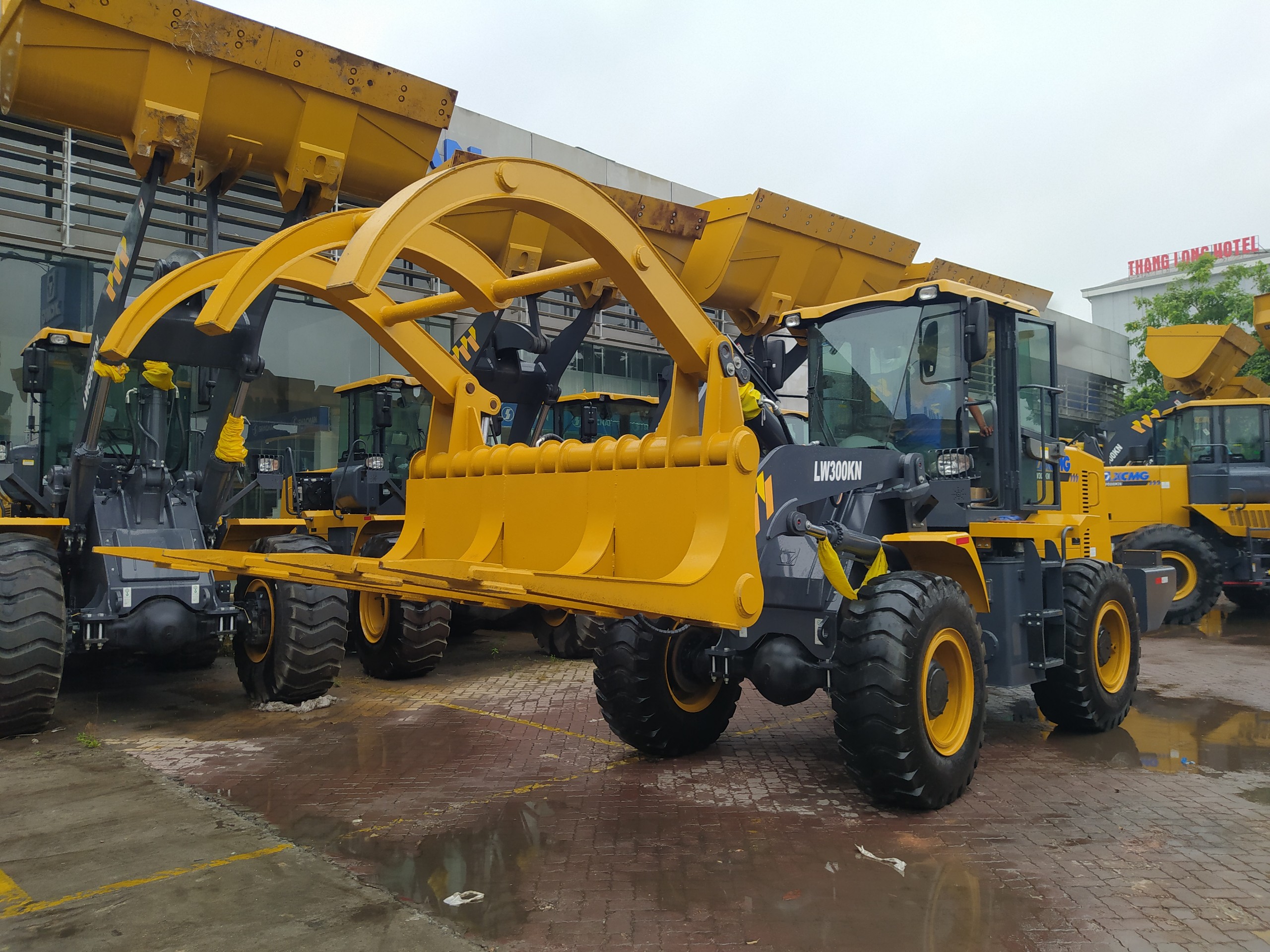 Máy xúc lật gắp gỗ XCMG LW300KN là sản phẩm với tải trọng nâng 3 tấn do tập đoàn máy xây dựng XCMG sản xuất. Máy được thiết kế bộ công tác gắp gỗ lắp trên máy cơ sở là máy xúc lật nhằm nâng cao phạm vi hoạt động của thiết bị. Việc này giúp tăng năng suất cấp nguyên liệu đầu vào trong các nhà máy chế biến lâm sản: dăm gỗ, viên nén, mùn cưa hay bốc xếp các cây gỗ lớn tại các bến cảng, bãi tập kết. Máy được trang bị động cơ công suất cao, moment xoắn lớn giúp hoạt động mạnh mẽ hơn tăng tính kinh tế và an toàn trong sản xuất.
