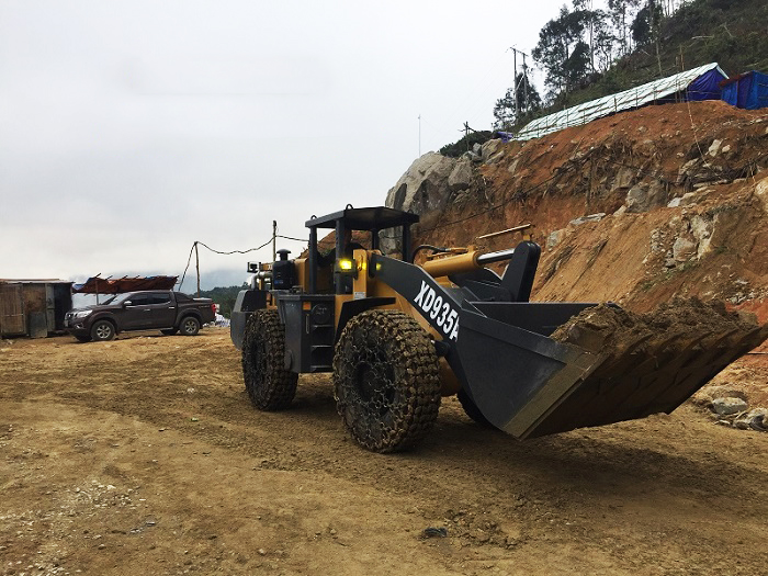 Máy xúc lật XCMG của Công ty xây dựng và khai thác khoáng sản ở Điện Biên.